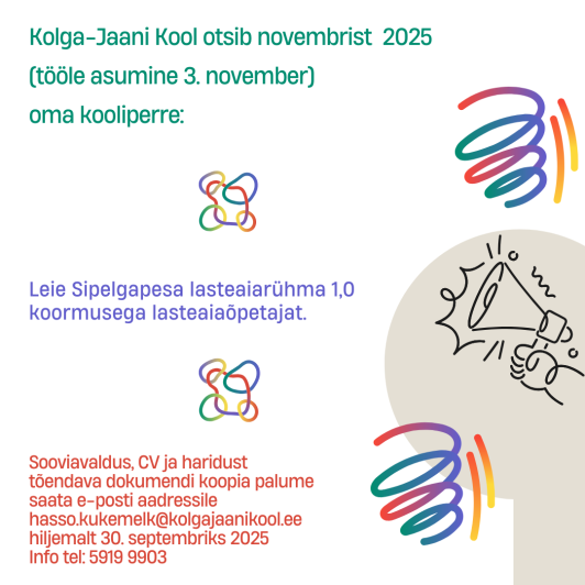 Sooviavaldus, CV ja haridust tõendava dokumendi koopia palume saata e-posti aadressile hasso.kukemelk@kolgajaanikool.ee