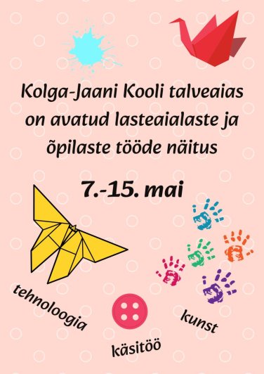 Aeg 00:00 - 23:59 Asukoht Koolimaja talveaed Sündmus Ava foto Vaata rohkem sündmusi Ava foto Avaldatud 28.04.2026. Viimati muudetud 28.04.2026.