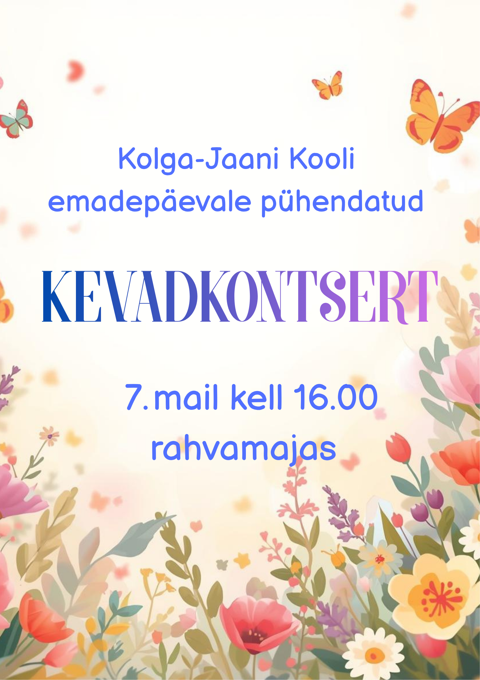 Näitus Loomise kuupäev 28.04.2026 Autor Kolga-Jaani Kool Taaskohtumine vilistlastega Loomise kuupäev 23.04.2026 Autor Kolga-Jaani Kool Meie käsitööõpetaja Sigrid Häkkinen Tank pälvis Viljandimaa rahvakunstimeistri tiitli Loomise kuupäev 20.04.2026 Autor Meeri Tatar Tutipäev Loomise kuupäev 10.04.2026 Autor Maris Kaur Vaata rohkem