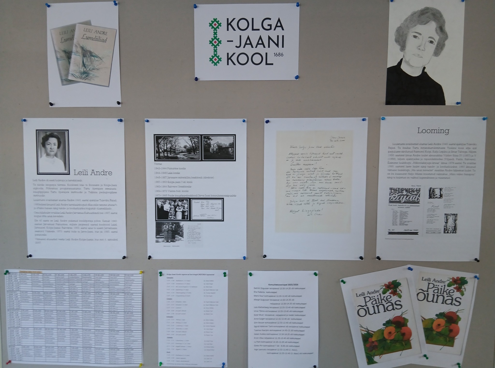 Leili Andre sünniaastapäeva puhul sai koolimaja terve esimese korruse sein õpilaste omaloomingut täis. Jagasime kooliastmete kaupa õpilastele ühe Leili Andre luuletuse. Luuletus oli lõigatud tükkideks sõnade kaupa ja õpilased pidid neist sõnadest ise uue loo kokku seadma. Kogunes väga palju ilusaid ja sisukaid mõtteid!