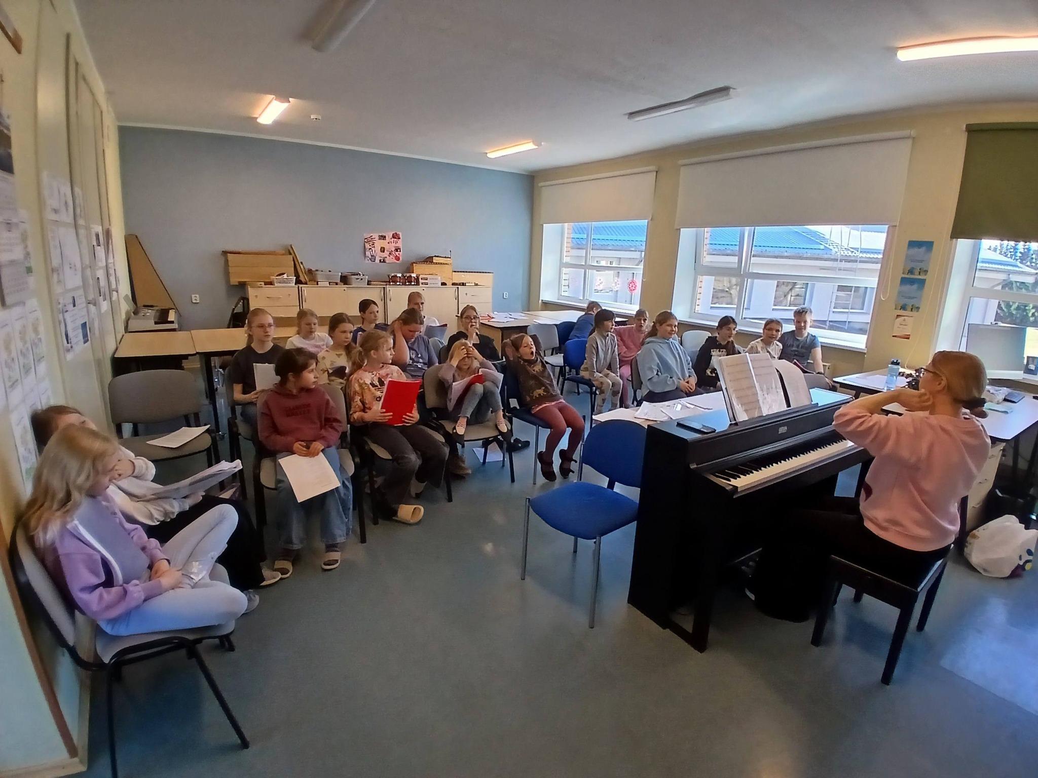 Koolimaja oli laulu täis nii neljapäeva õhtul kui ka reede hommikul. Lisaks laulmisele tekitas elevust võimalus koolimajja ööseks jääda. ![]()
